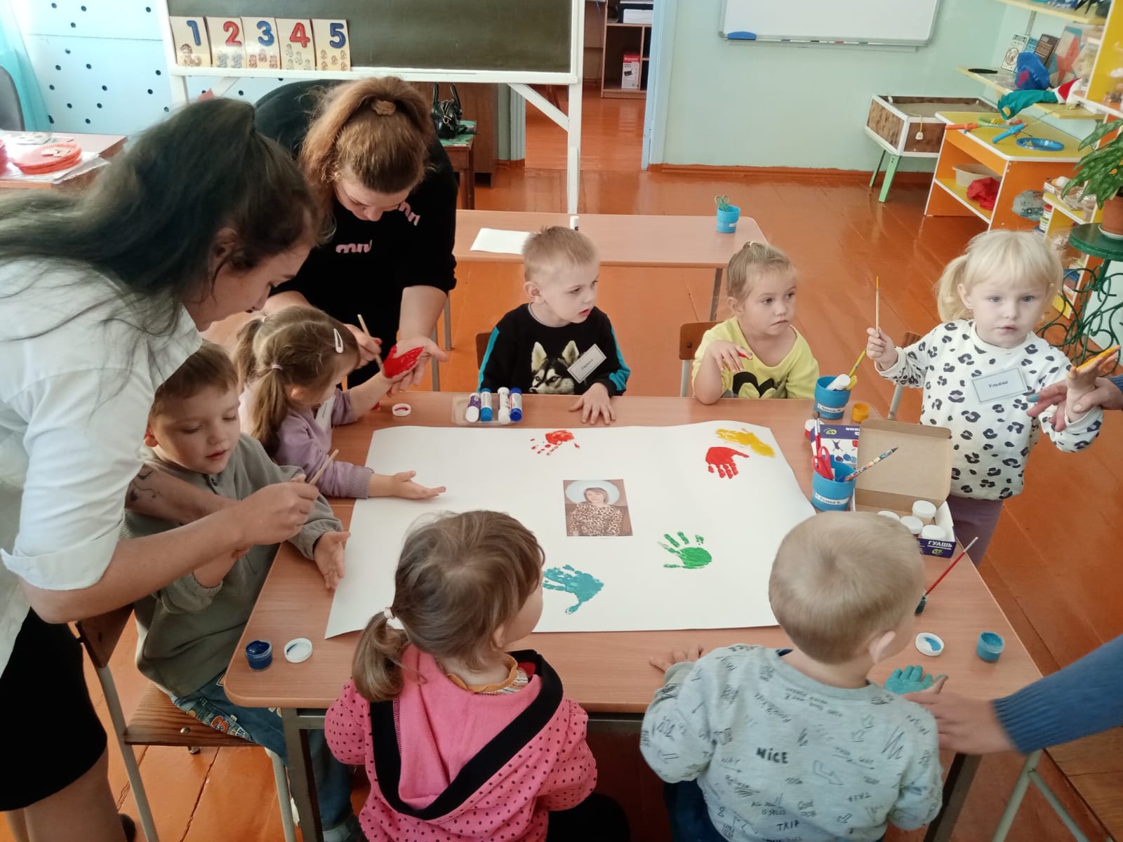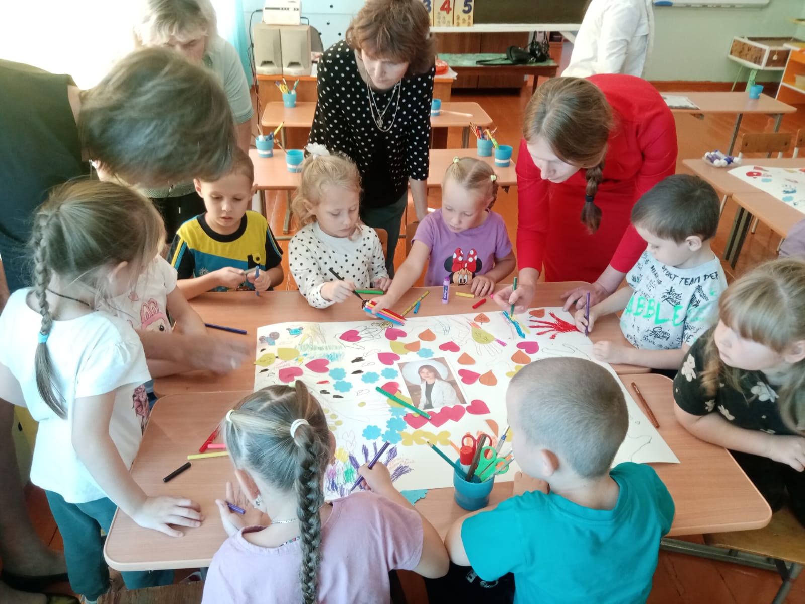 День закончился коллективным совместным творчеством родителей с детьми. Детско-родительские коллективы оформили яркие красивые поздравительные стенгазеты для воспитателей.